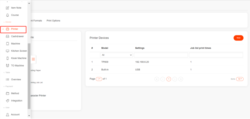 - Select default printer as you need. (If the item has a preset printer, it will print on the corresponding printer, if not, it will print on the default printer)