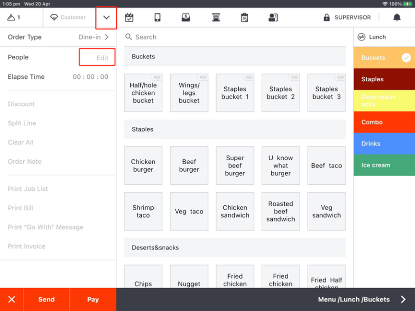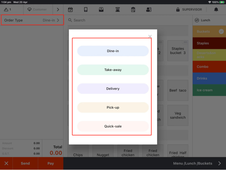 How to Change an Order Type When Placing an Order Click the circled place to select another order type as needed. Updated on 30 May 2023 Related Articles How to Set a Service Charge to an Order How to Gift an Item When Ordering How to Modify the Number of Guests on the Ordering Page How to Transfer a Table How to Switch the Language of Your Menu How to Delete an Item Before Or After Sending