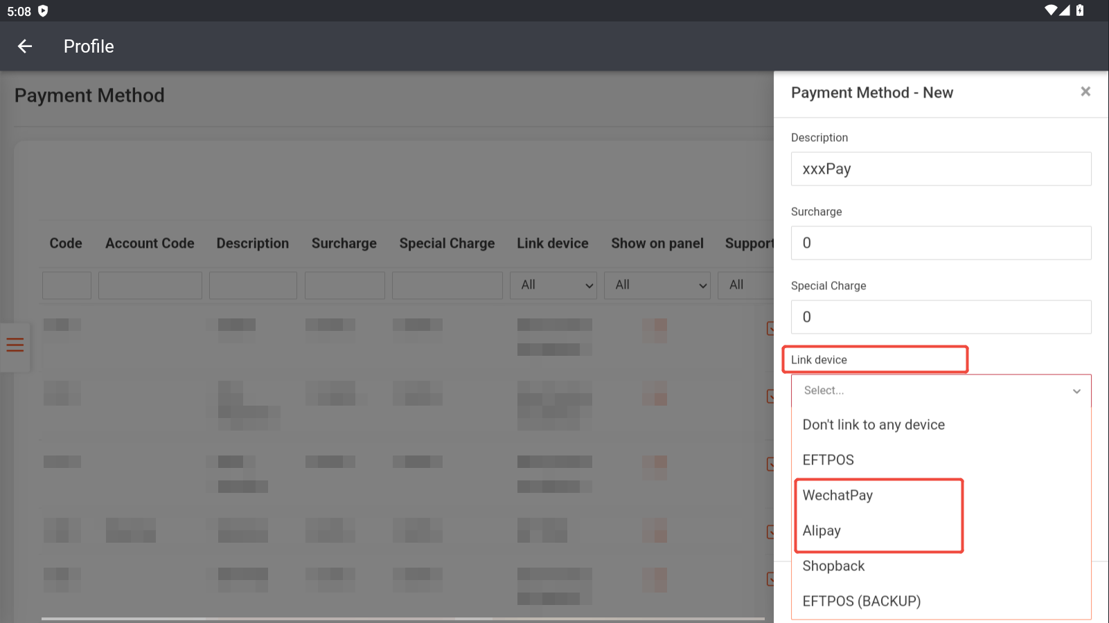 Then select “Link Device” to be WeChat Pay or Alipay based on your needs.