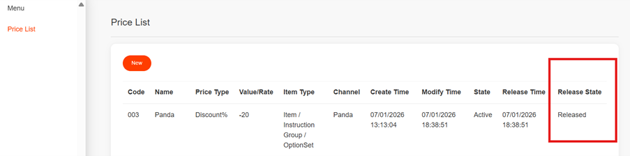 After completing Price List setup, remember to click the Save button on the top-right corner, then click Release.