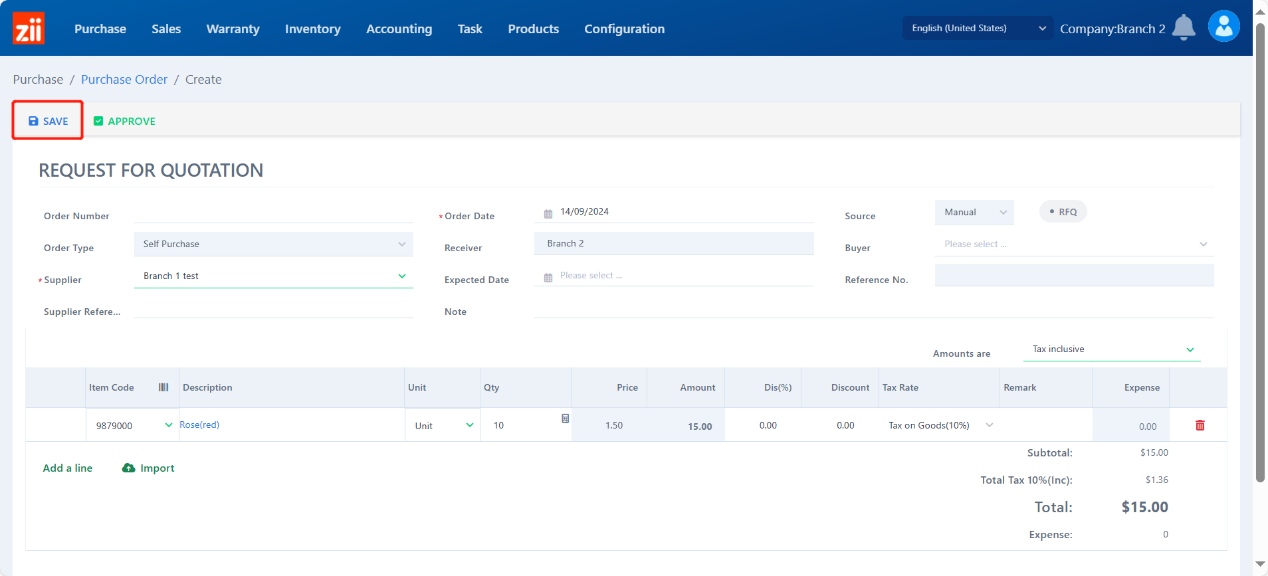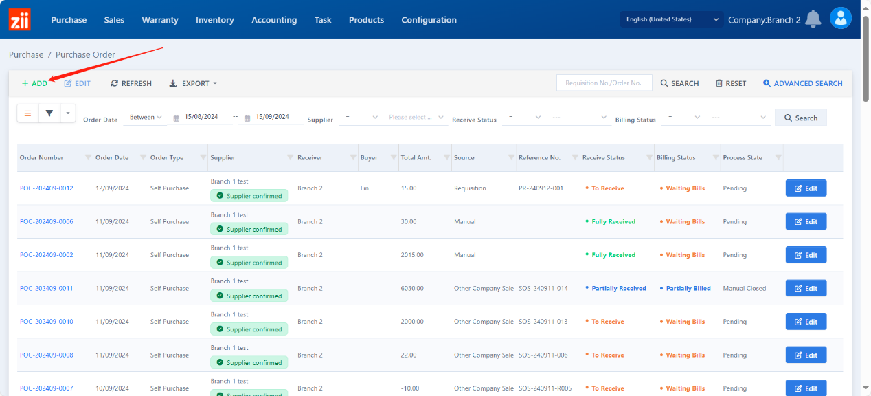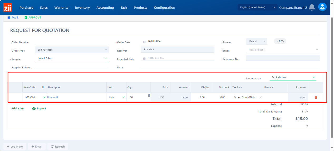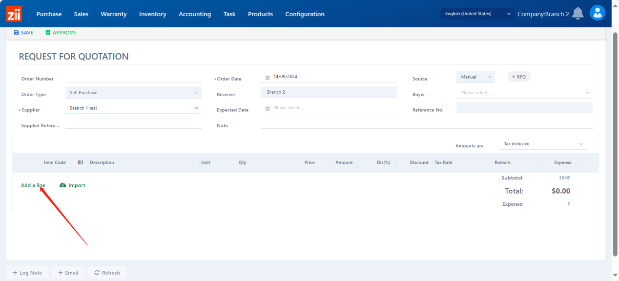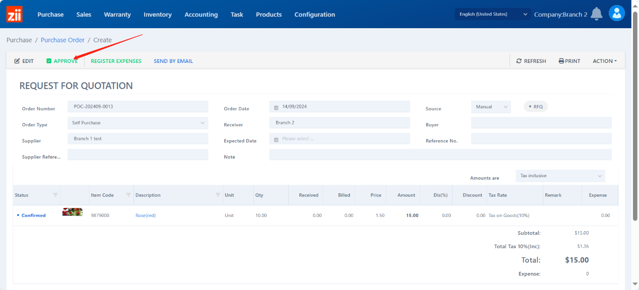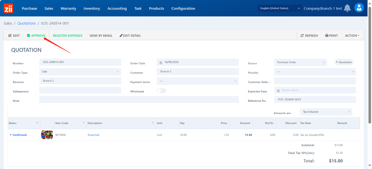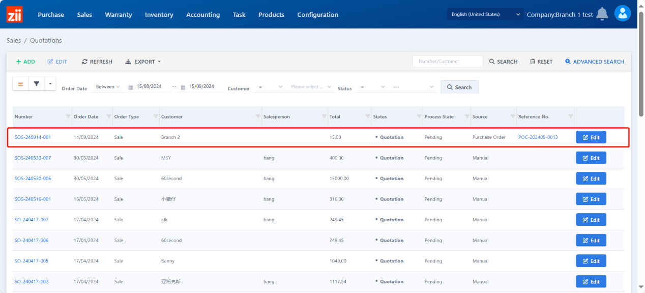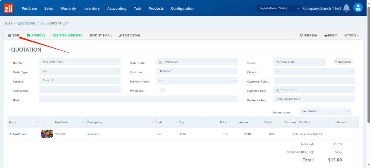 - You’ll find the purchase order generated a quotation here. Click “Edit”.