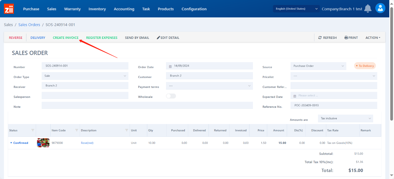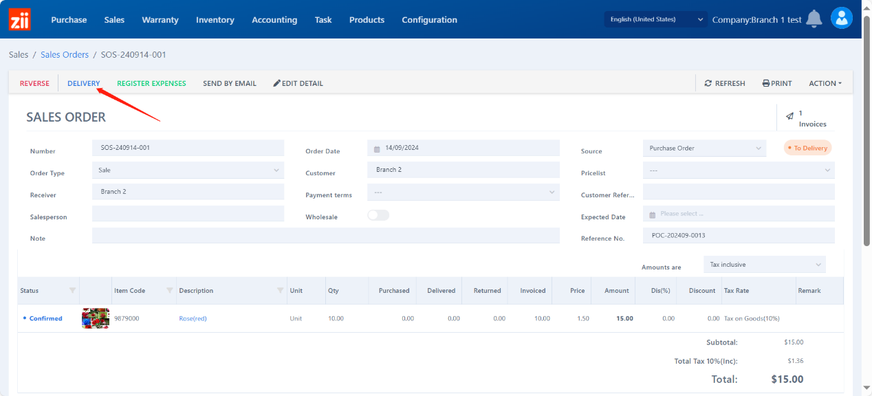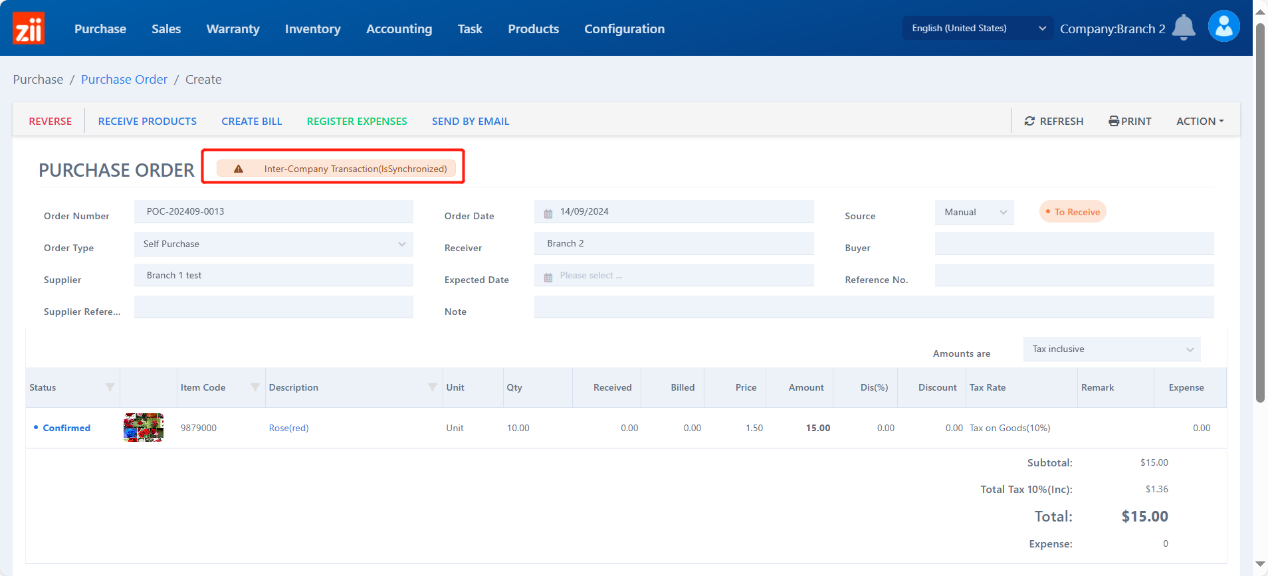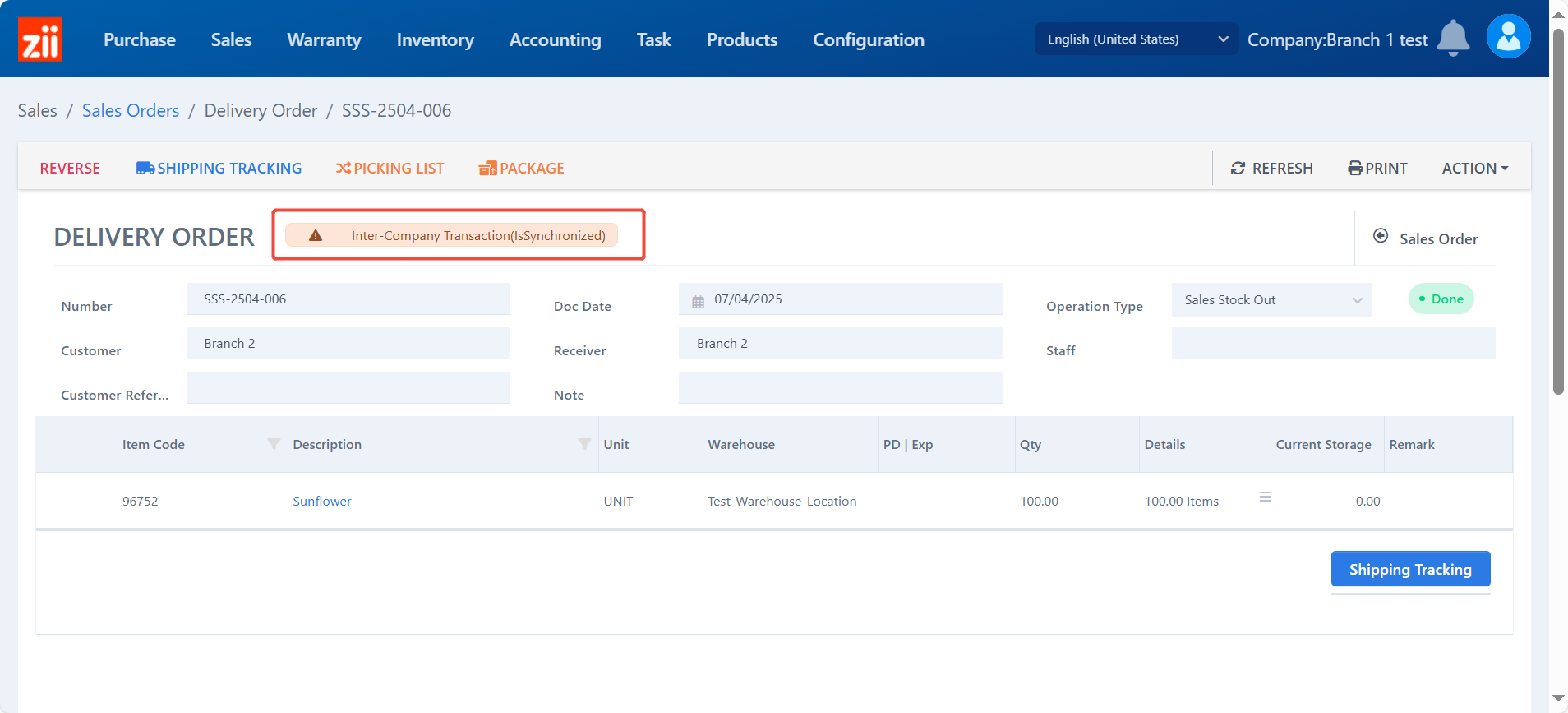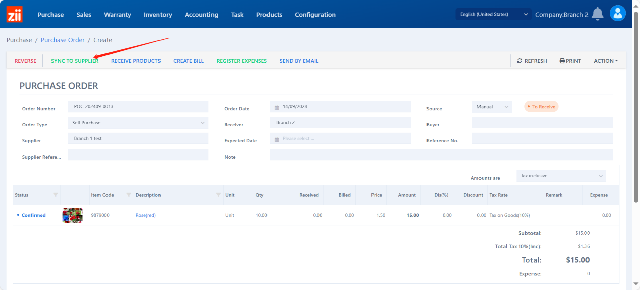 - Click “SYNC TO SUPPLIER” to generate a sales order for the supplier branch.