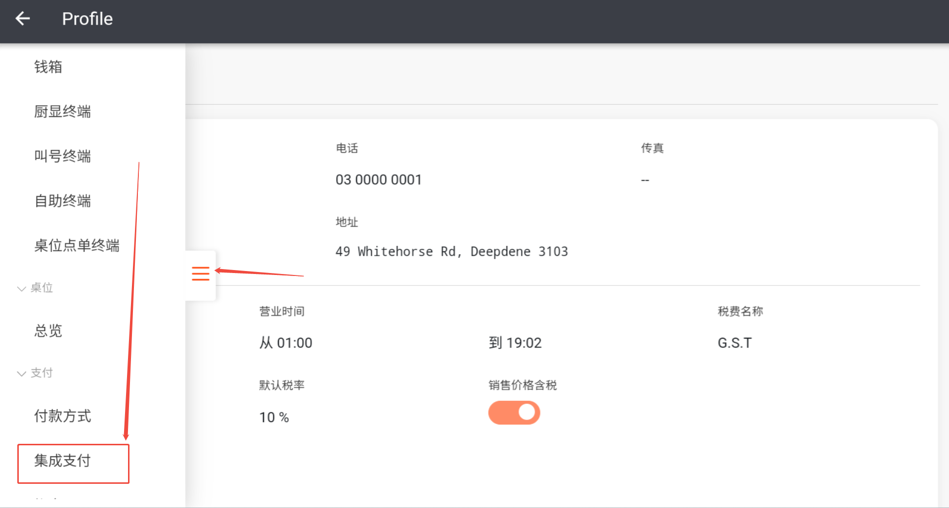 点击左边的红色按钮,下滑至 “集成支付”
